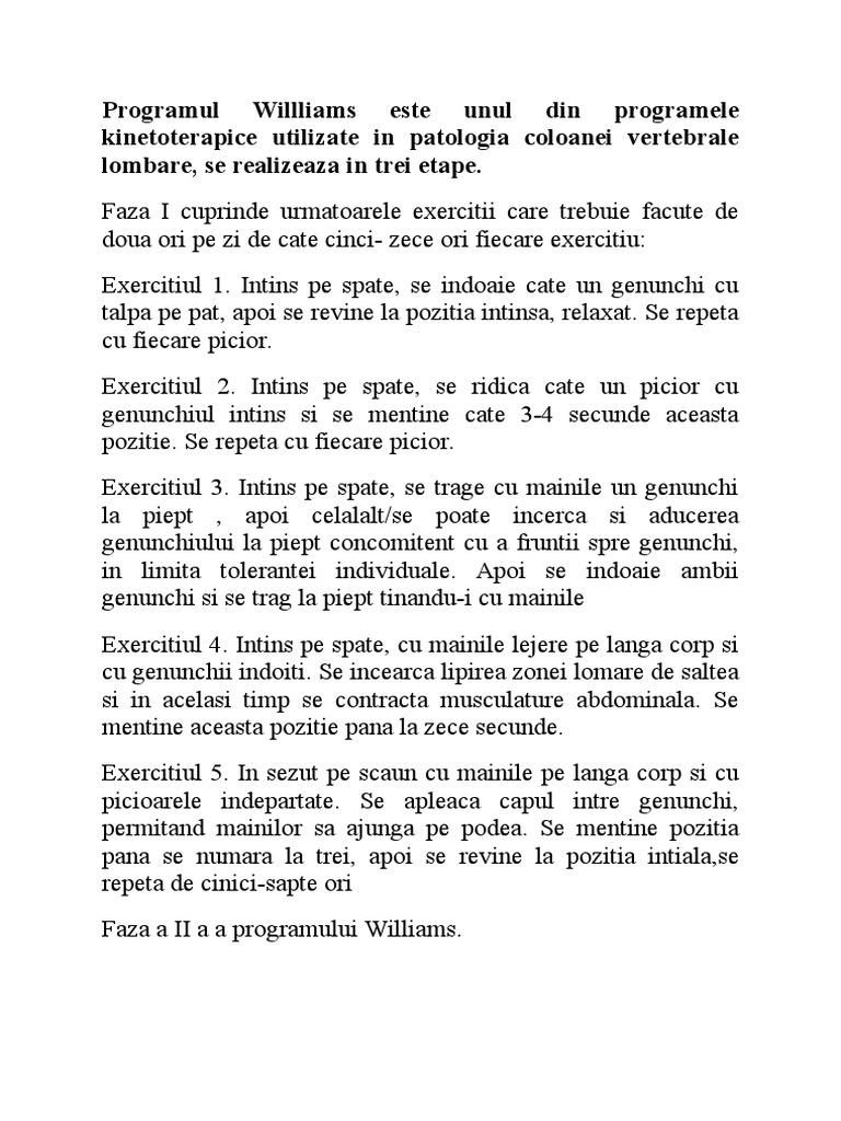 Kinetoterapia In Durerile Coloanei Vertebrale Lombare Programul Williams