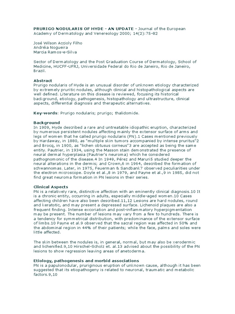 Prurigo Nodularis Of Hyde Docx Cutaneous Conditions Earth Life Sciences