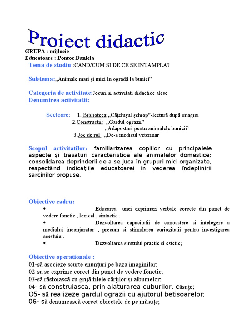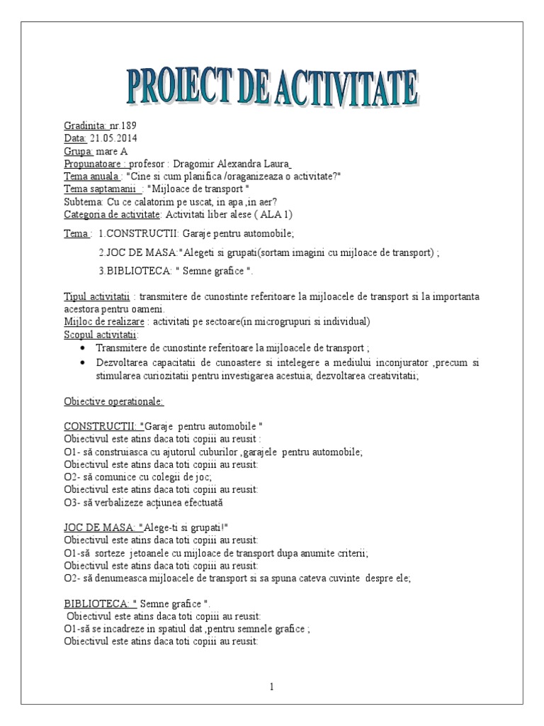 Doc Proiect De Activitate Dana Lespede Academia Edu