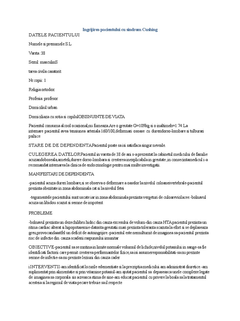 Sindromul Cushing La Caine Tocilar Ro