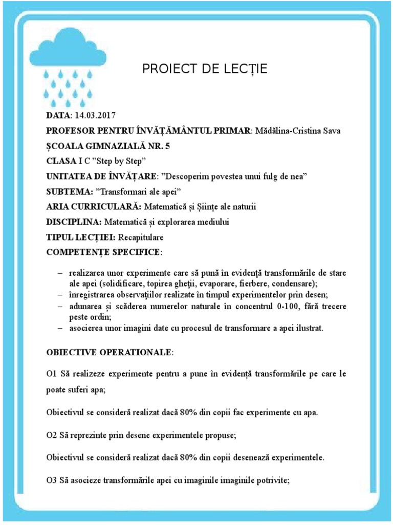 Transformările Apei și Operații Cu Numerele De La 0 La 20 Materiale Didactice