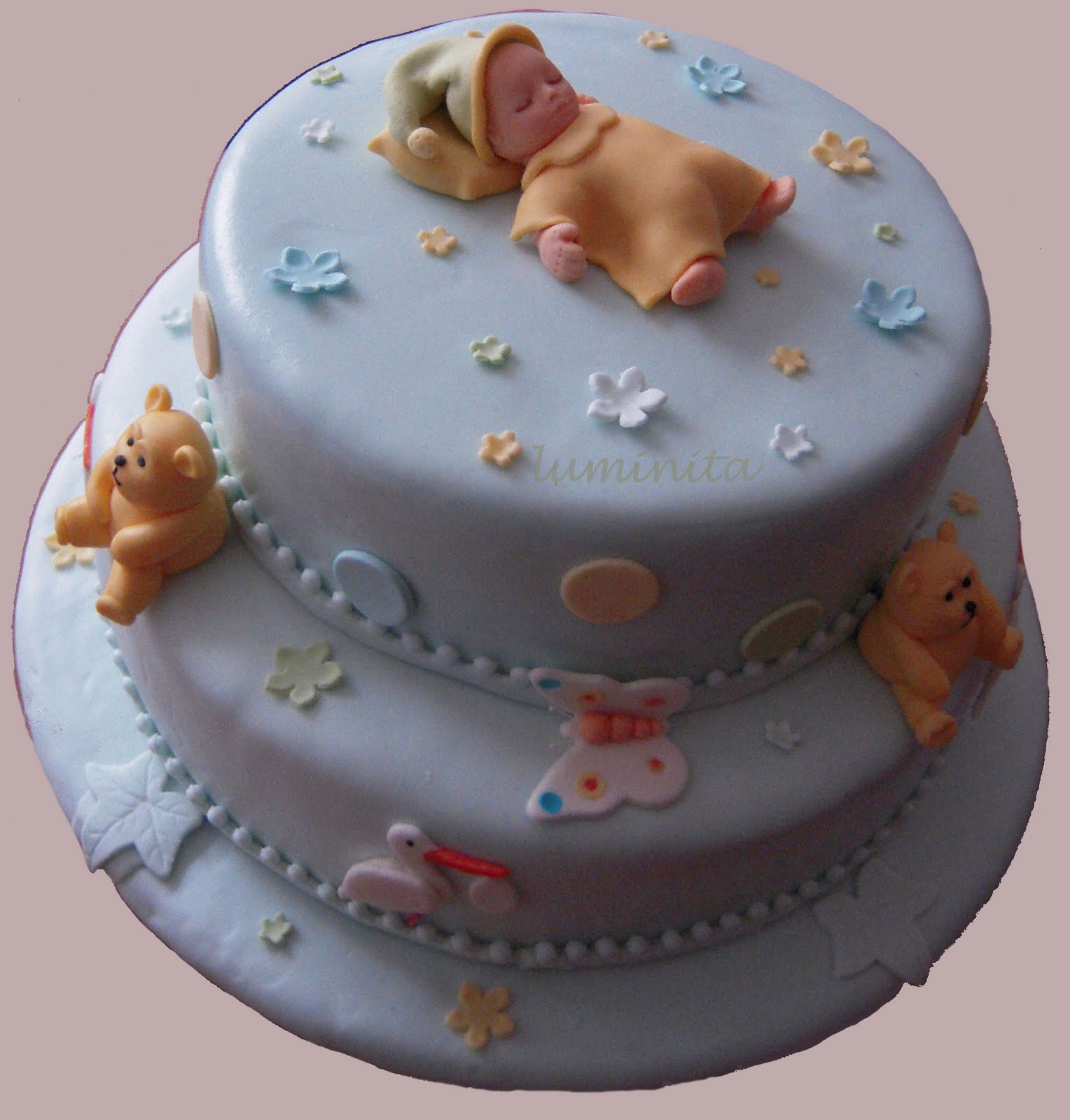 Mic Elegant Si Rafinat Un Tort Pentru Botezul Unui Bebelus Decorat Cu Botosei Si Baby Christening Cakes Baby Boy Christening Cake Baby Shower Cakes For Boys