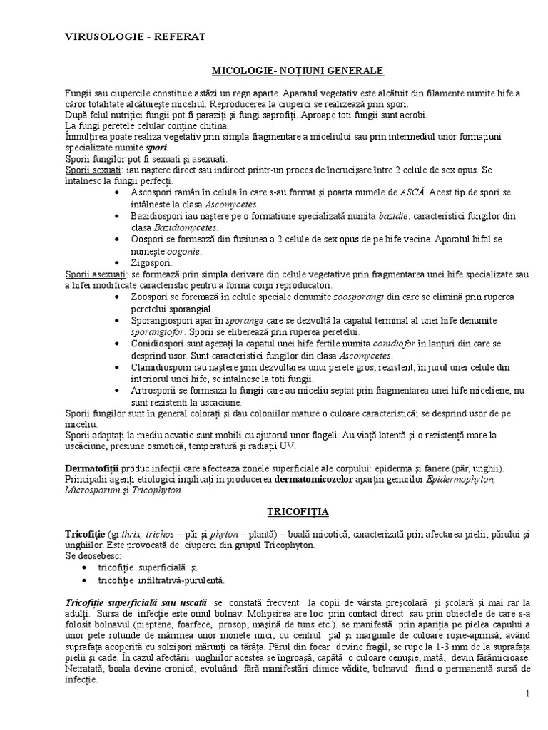 Referate Micologie Tricofitia Favusul Microsporia Epidermofitia Candidoza Actinomicoza